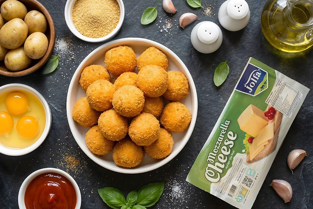 كرات البطاطس المقرمشة المحشوة بجبنة موزاريلا جلفا